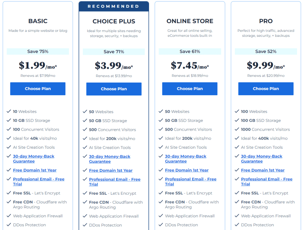 • Pricing: Their hosting plans are well within the reach of most users, particularly those just starting.