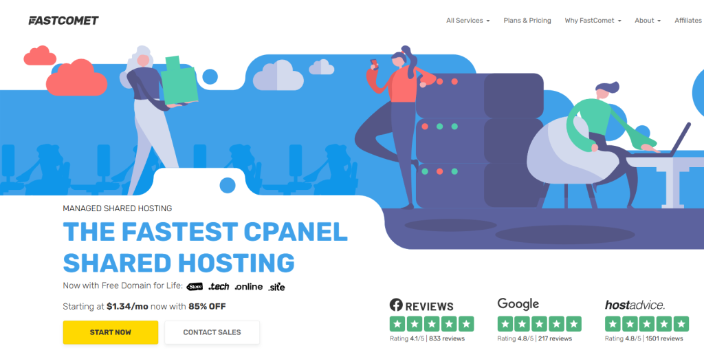 Established in 2013FastComet is a relatively new web hosting company that has grown immensely over the past years. They’re currently running 12 data centers around the globe and have a team of 100+ employees. The company provides fast and secure hosting to small and mid-sized businesses. Owning the latest server hardware and the use of industry-leading software, FastComet justifies its name with notably fast performance.